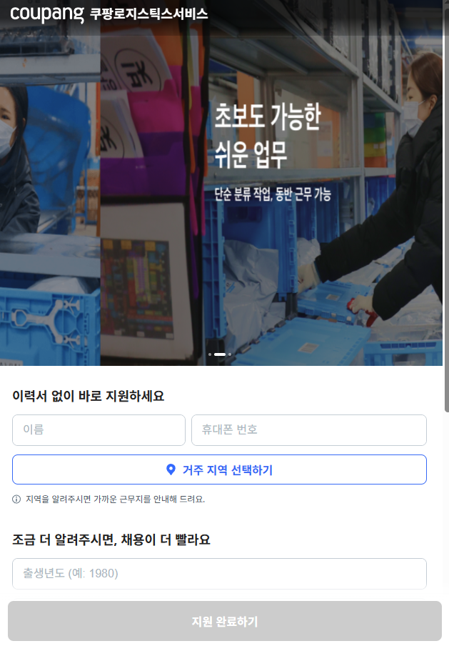 쿠팡 알바에 지원해 보세요