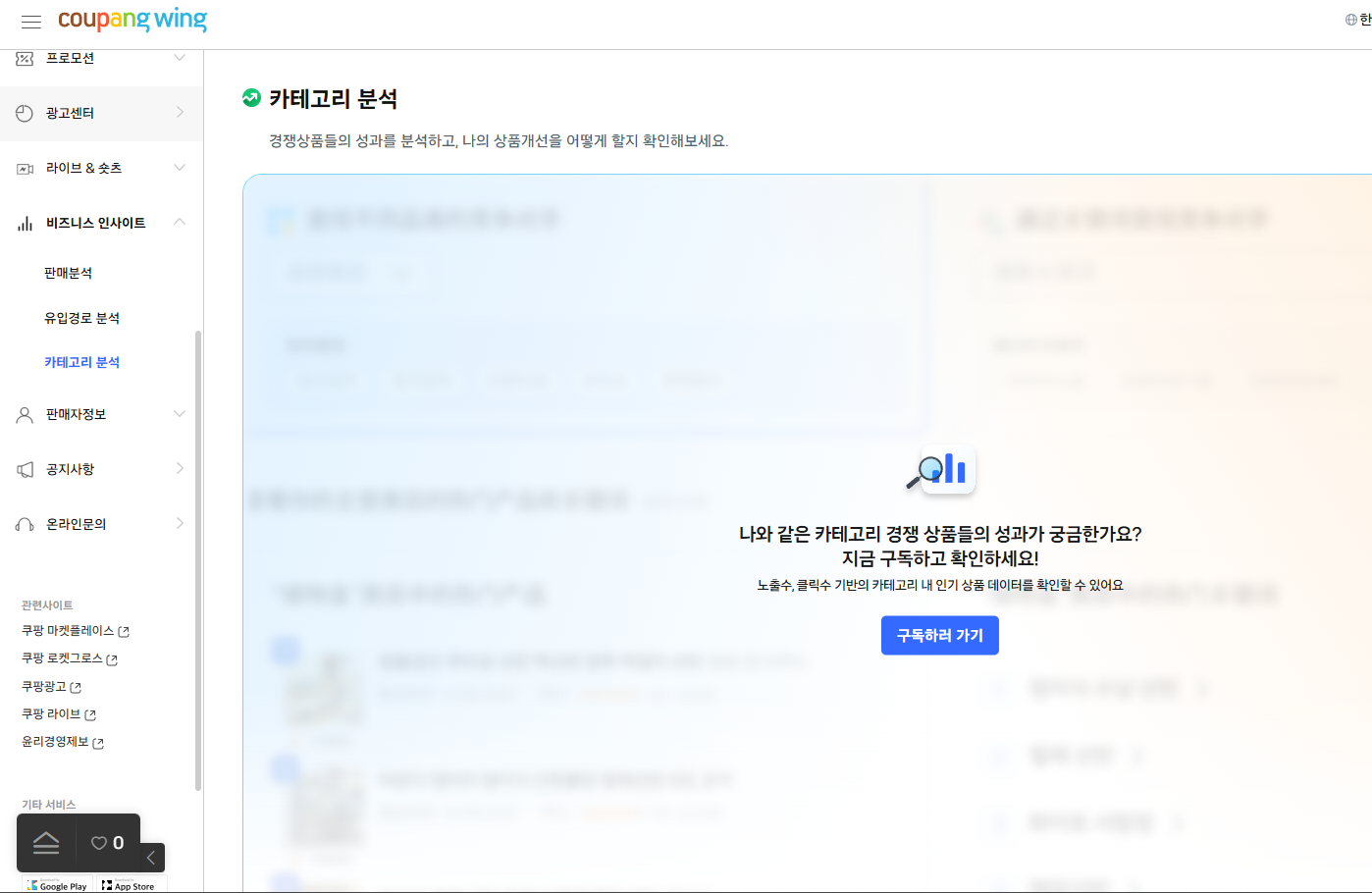 그로스 페이지에서 비즈니스 인사이트라는 판매분석 툴이 생겨서 오 왠일인가 했는데 유료화 되었다